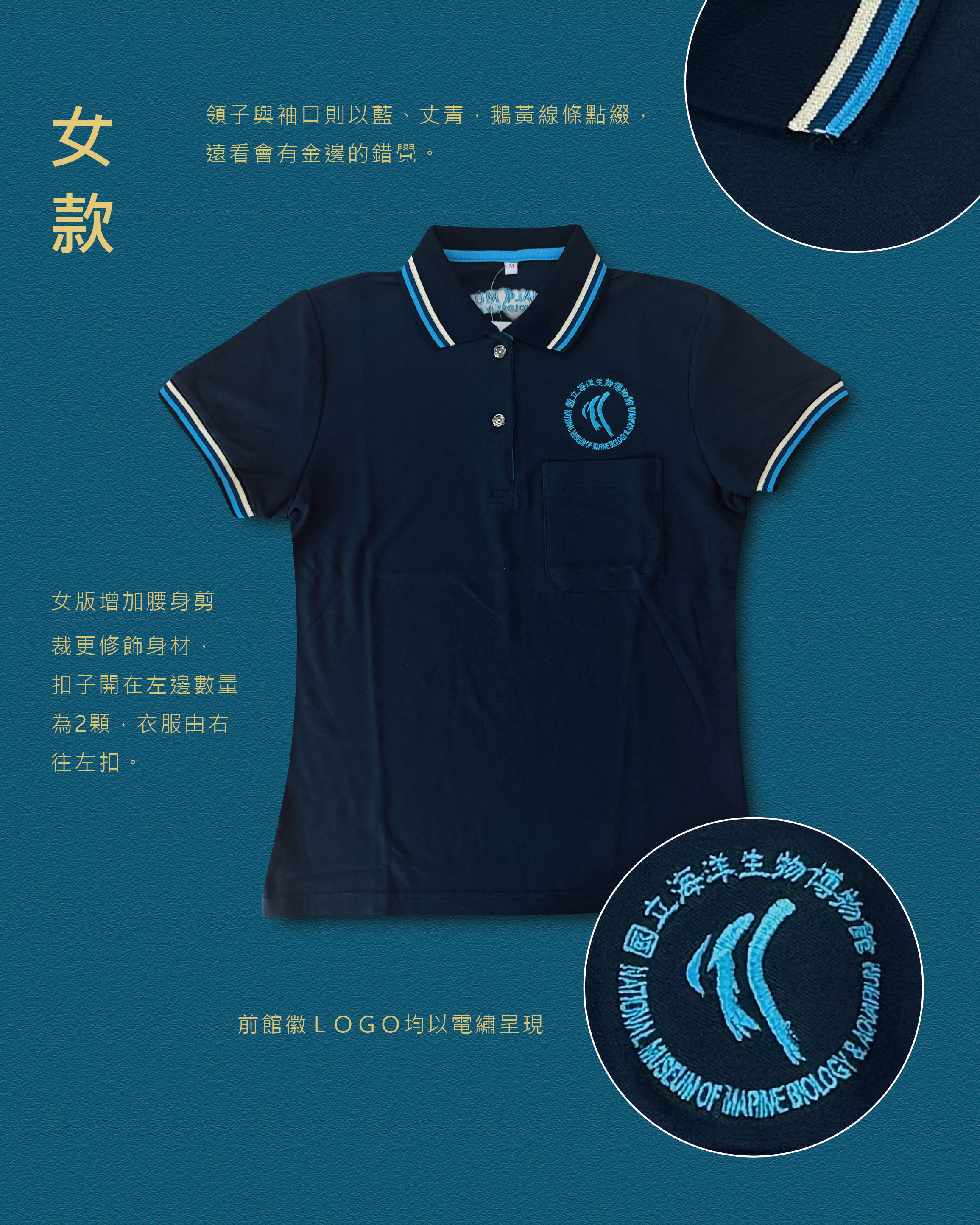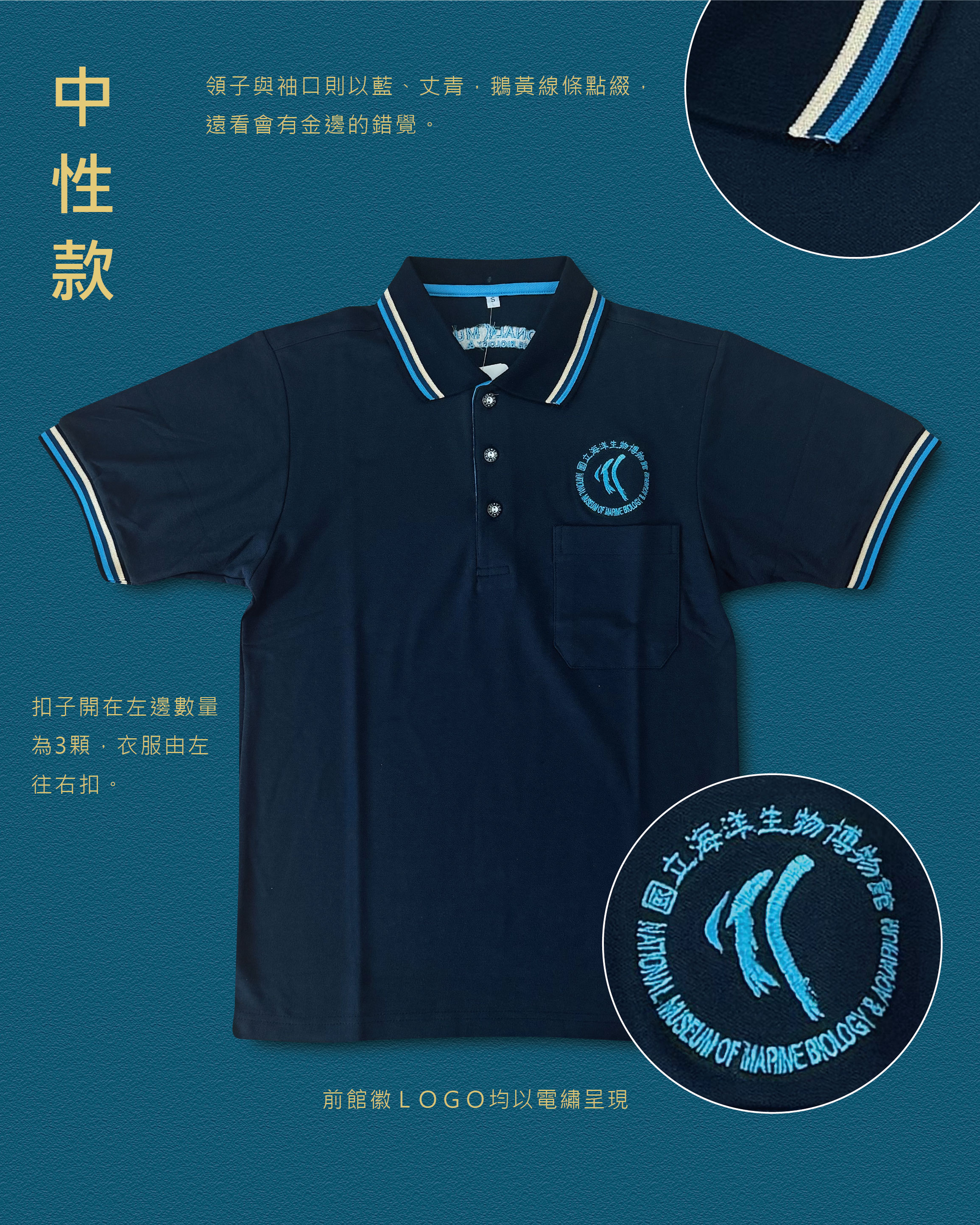 館方獨家-正式場合休閒活動兩相宜,前後館徽LOGO均以電繡呈現,領子