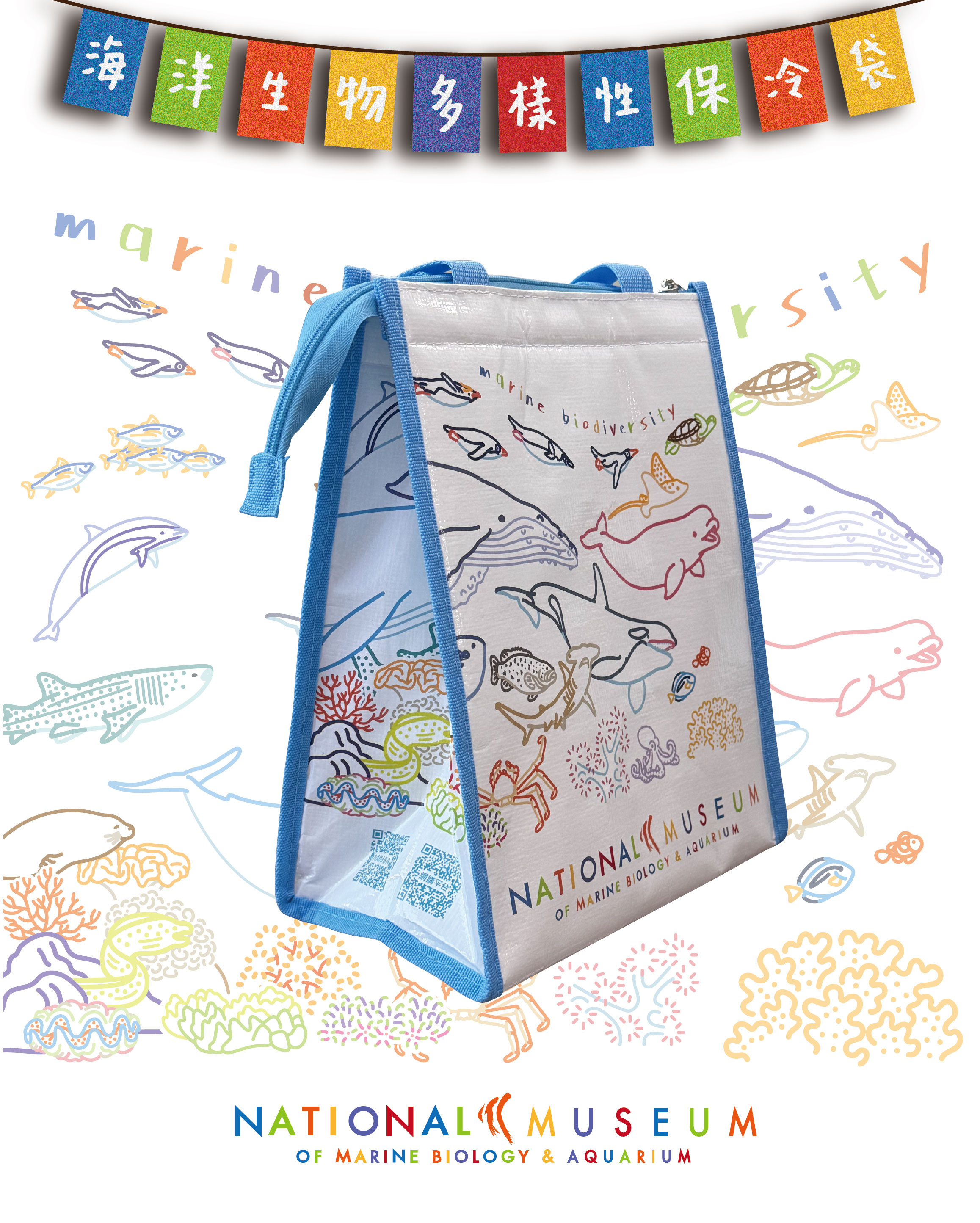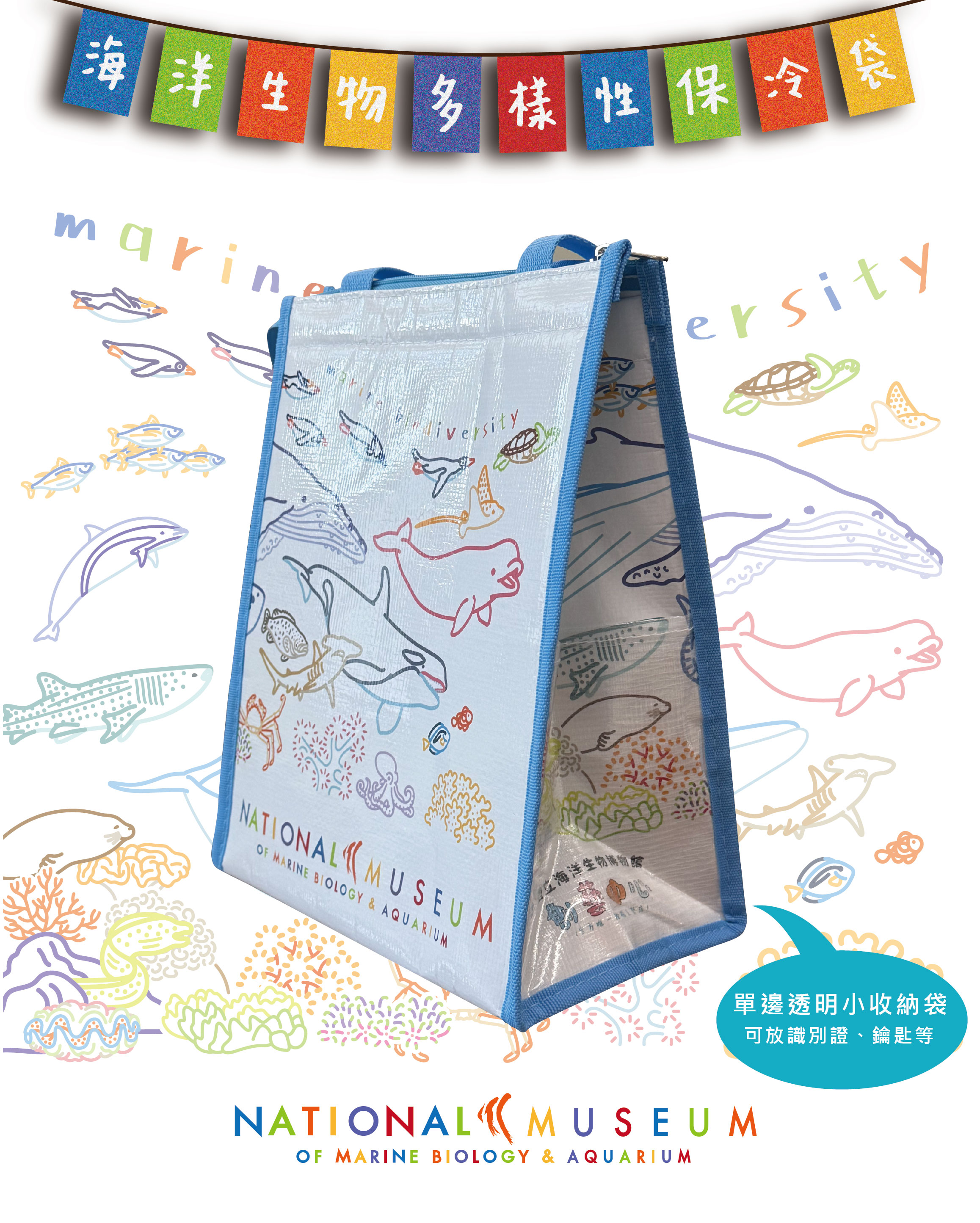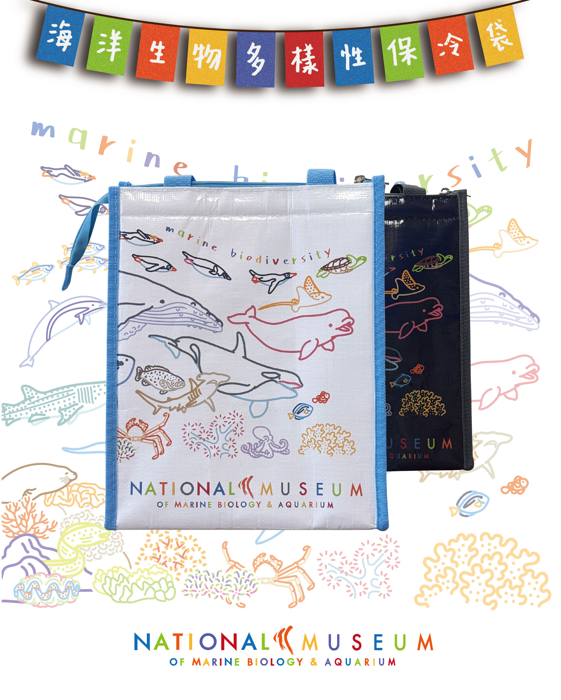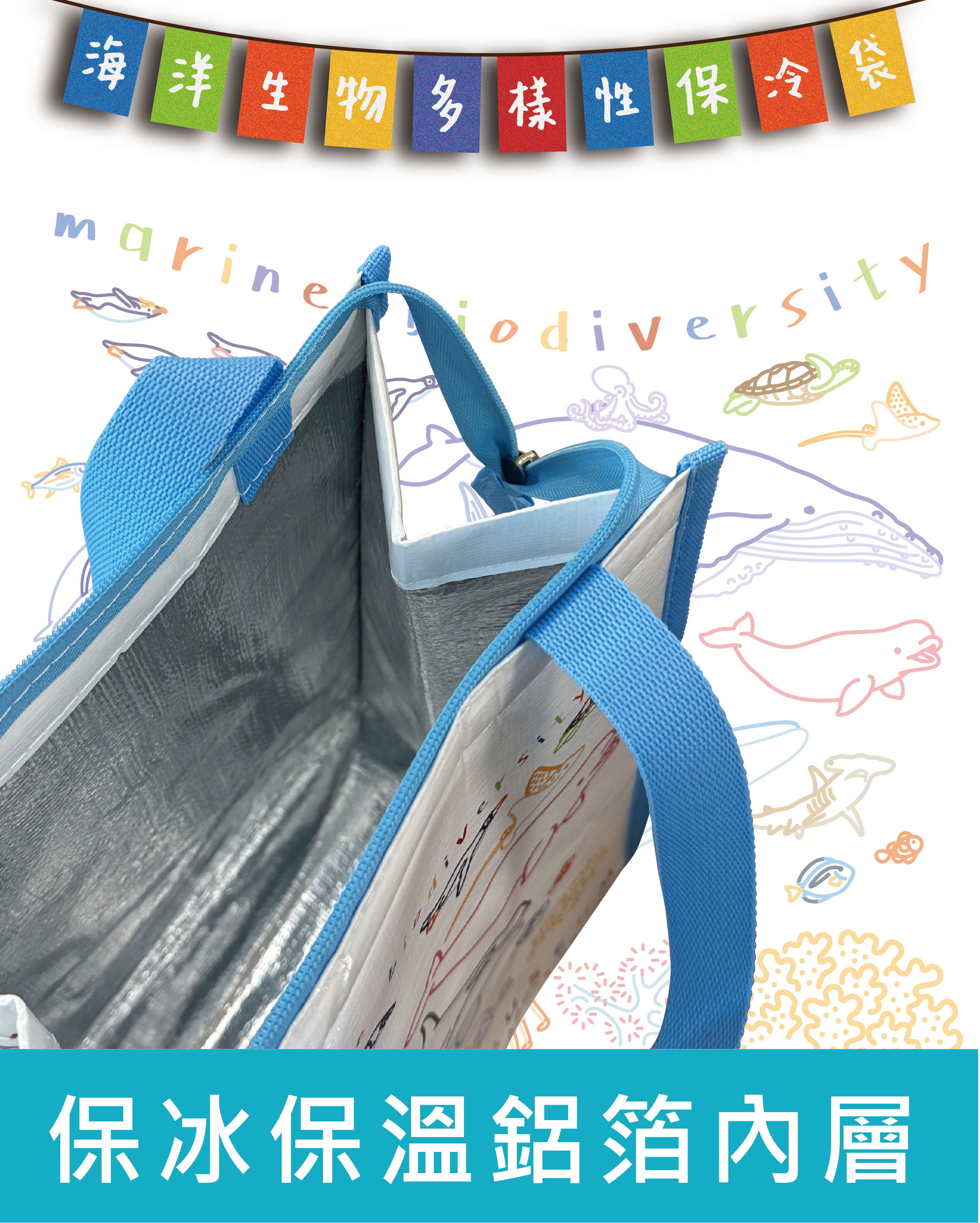 創-海洋多樣性保冷袋-白/藍黑