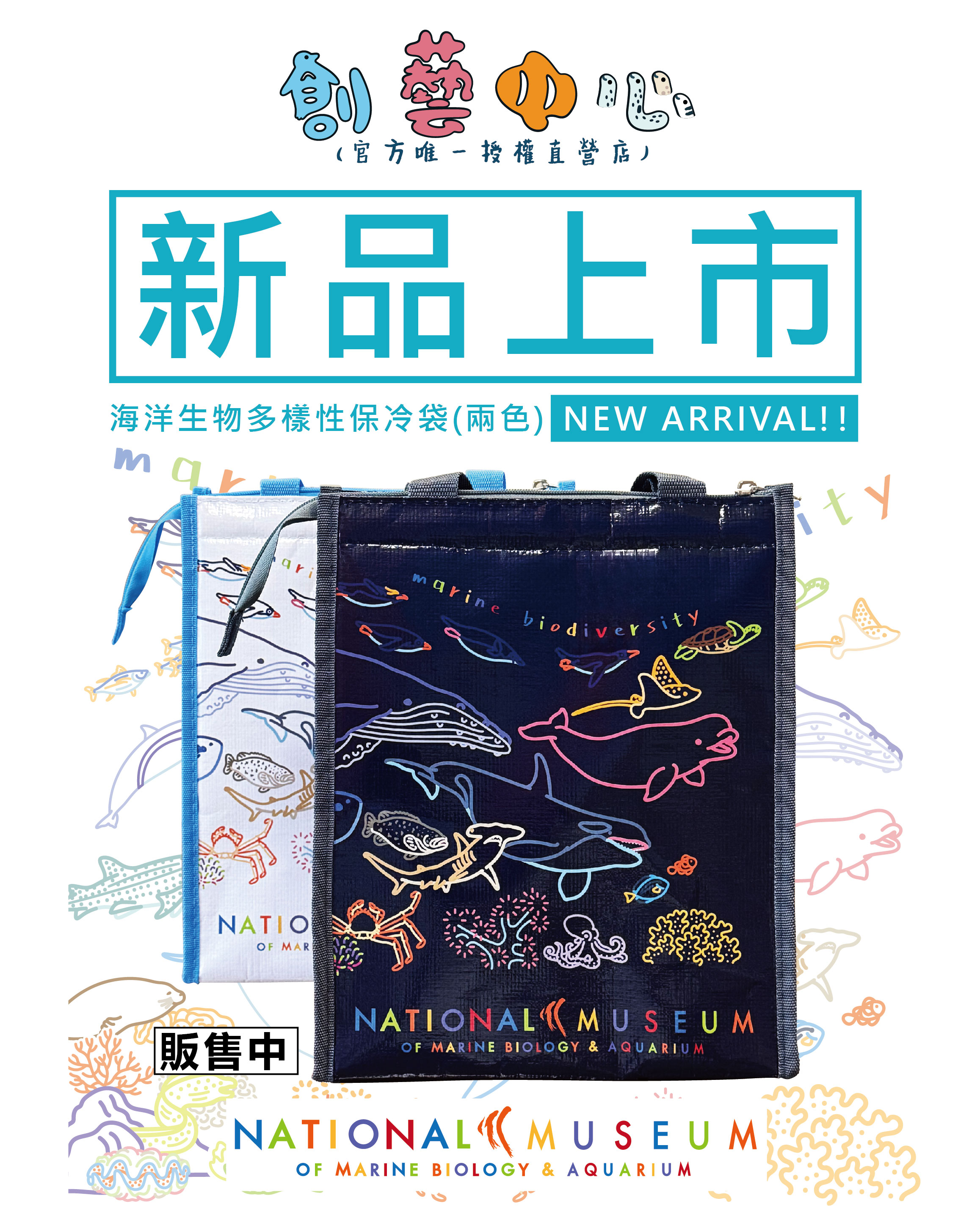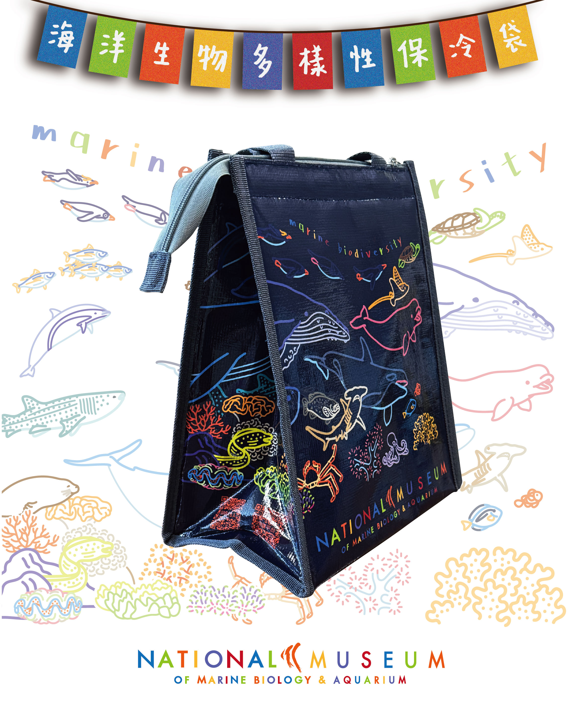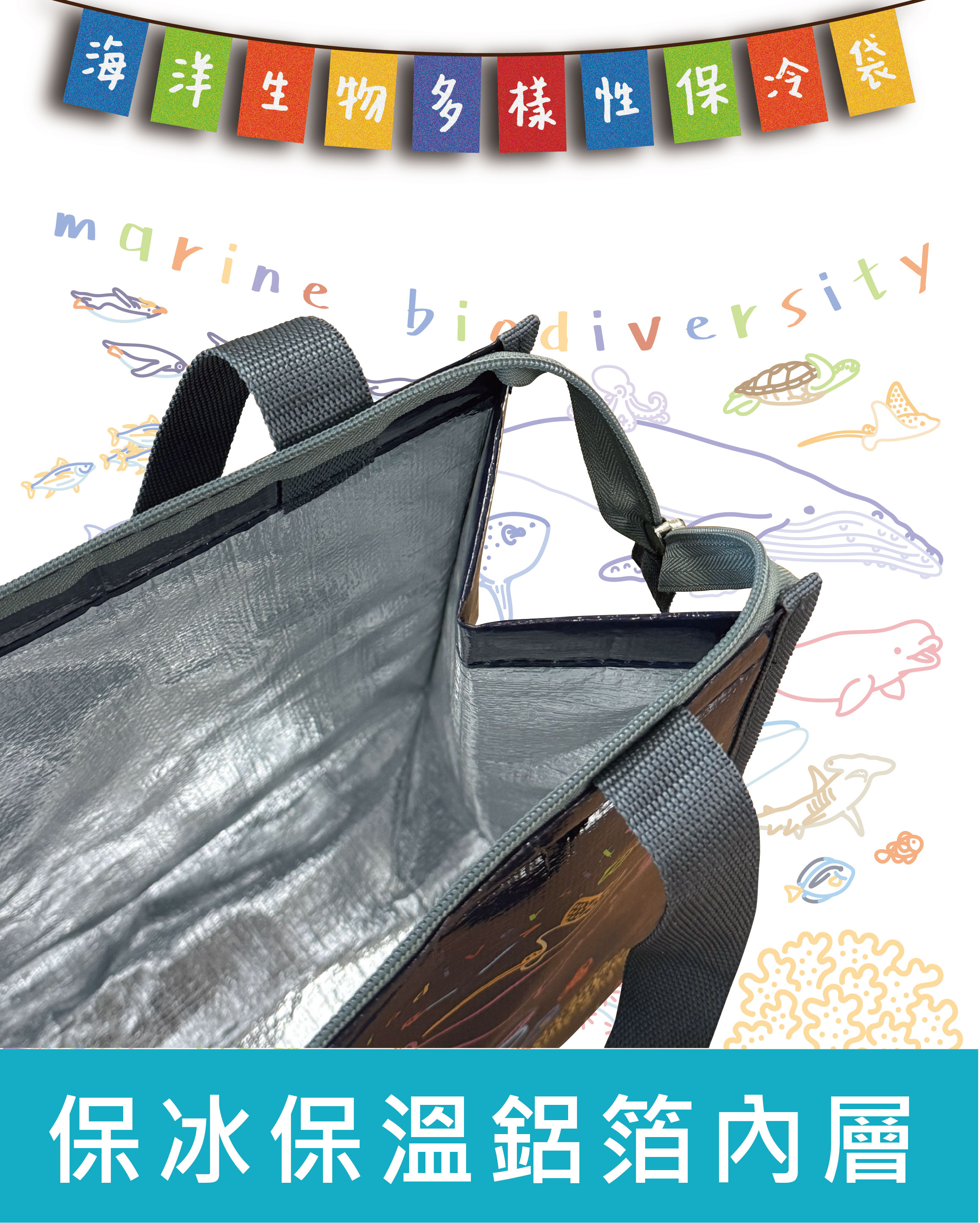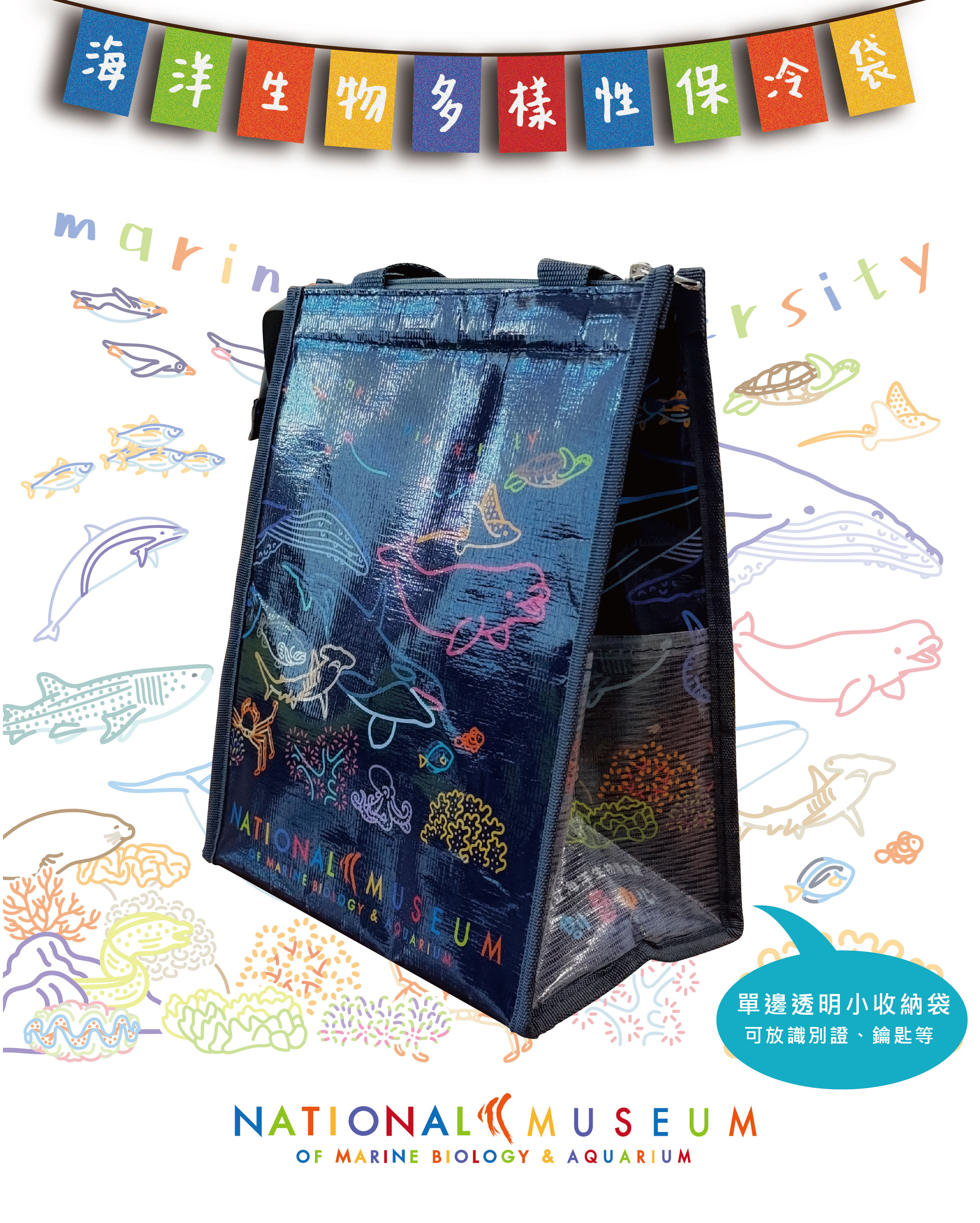 創-海洋多樣性保冷袋-白/藍黑