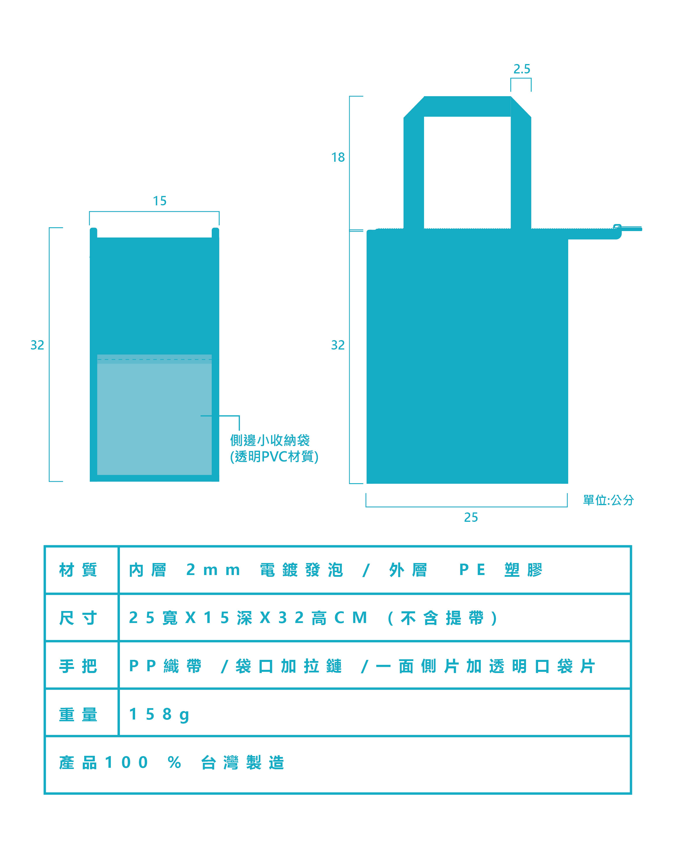 尺寸 : 25寬X15深X32高CM (不含袋高)