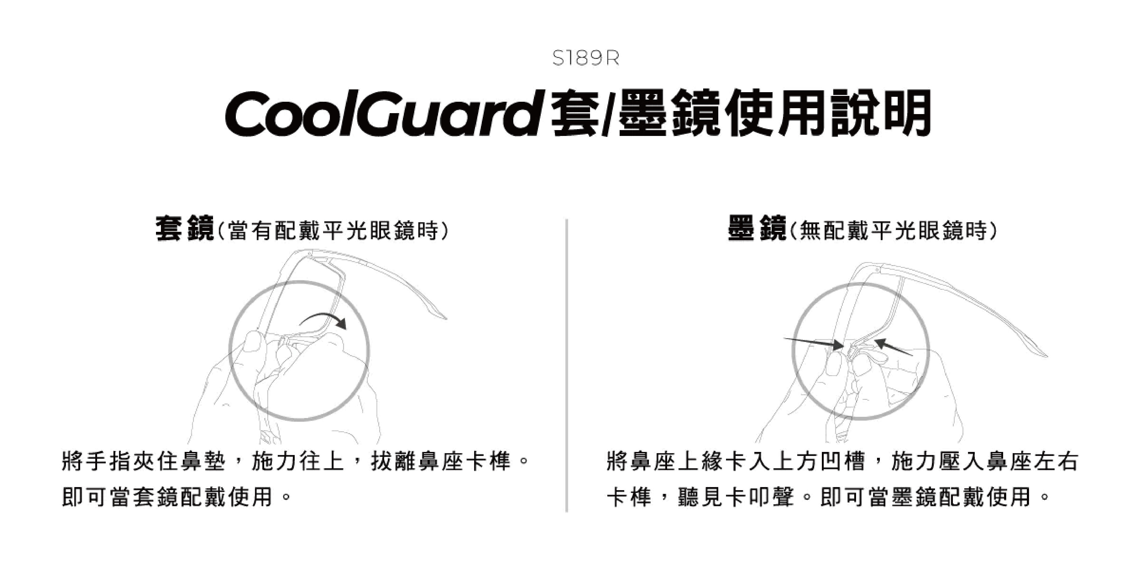 可調式、可拆式防滑鼻墊,輕鬆轉換套/墨鏡使用模式